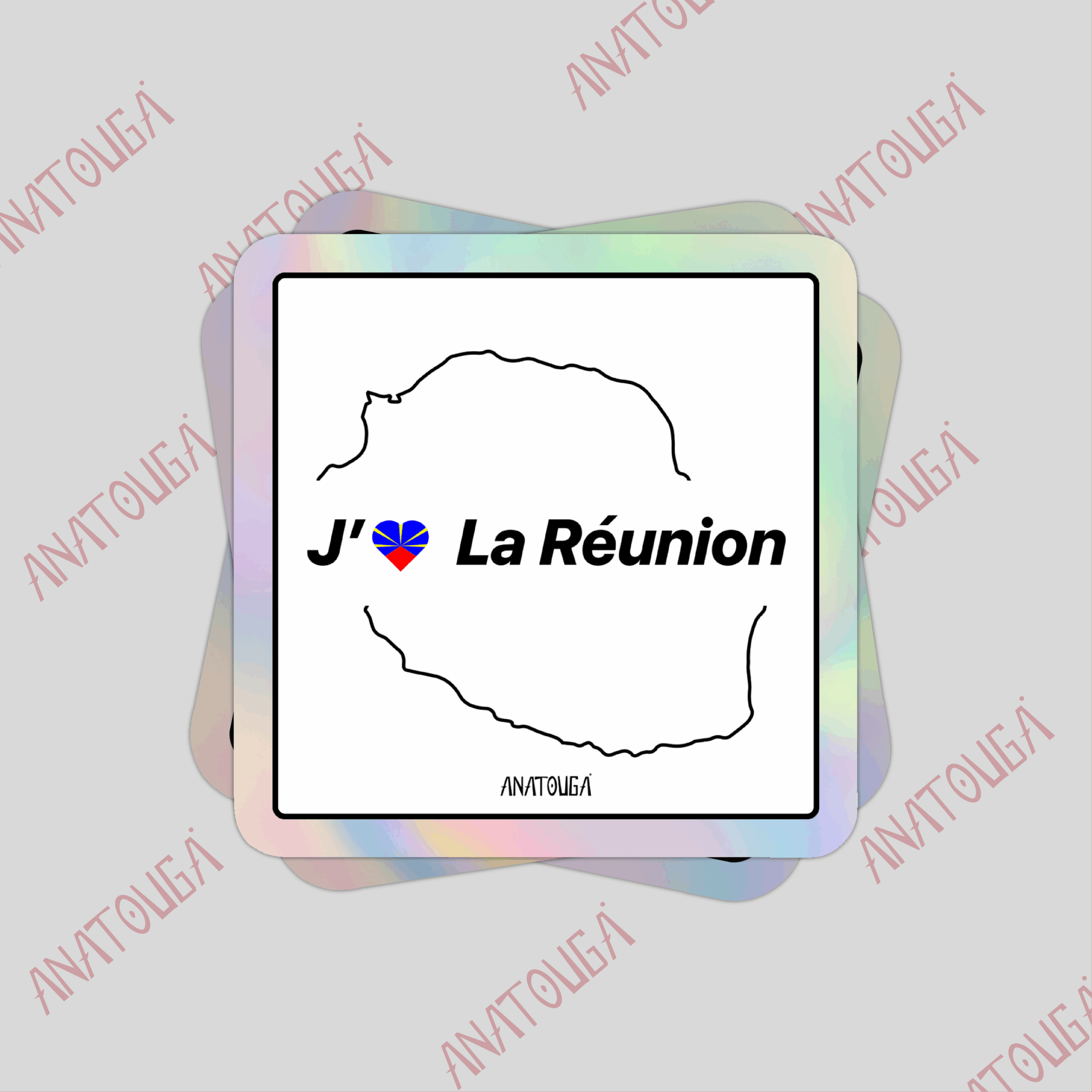 Design : Élégant et minimaliste, avec la phrase « J’aime La Réunion » avec un cœur reprenant le drapeau local.